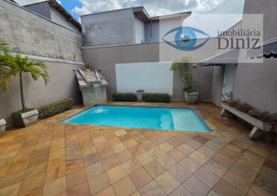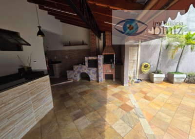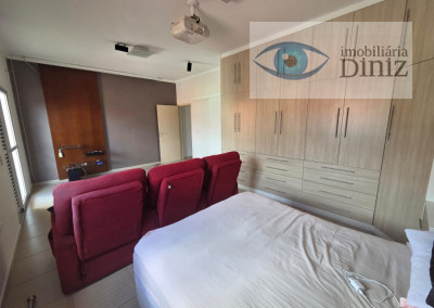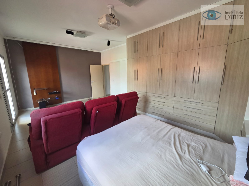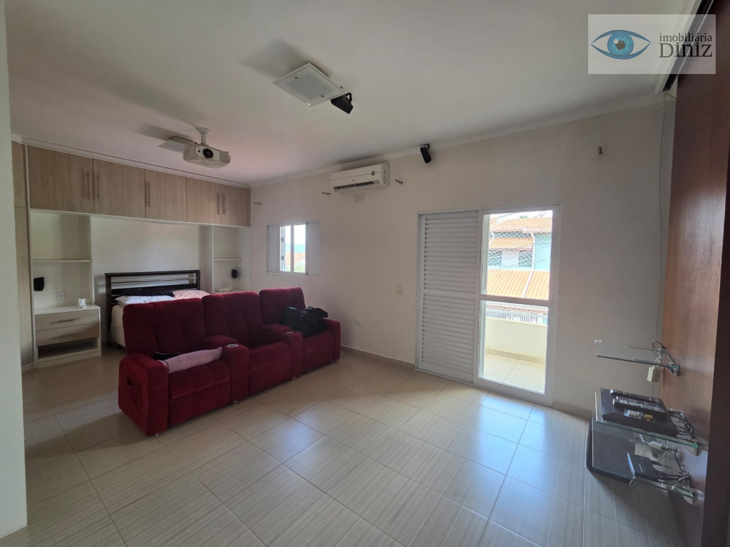Sobrado de cinema com 4 vagas de garagem : Piso Superior: são 3 quartos, (sendo uma suíte Master que ficará cama , sofá, telão de 119 polegadas com projetor Epson 3d , armário planejado, Box blindei, ar condicionado), armário planejado, ar condicionado, wc social c/ box, acessórios,chuveiro, sacada com vista para serra e rede de proteção, escada de granito, PISO TÉRREO: Ampla sala 2 ambientes com lampadas, quarto reversivel para escritório, cozinha planejada com ilha, cook top, forno, wc social completo, 1 Suite na área externa para visitas, Área de serviço com teto retrátil, Piscina com cascata, churrasqueira, fogão e forno a lenha cascata, Barzinho com pia, lavabo externo, ESTUDA PROPOSTA COM IMÓVEL DE MENOR VALOR.